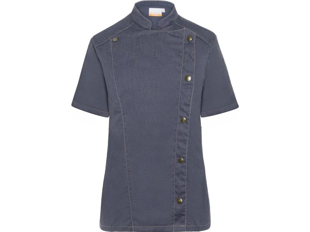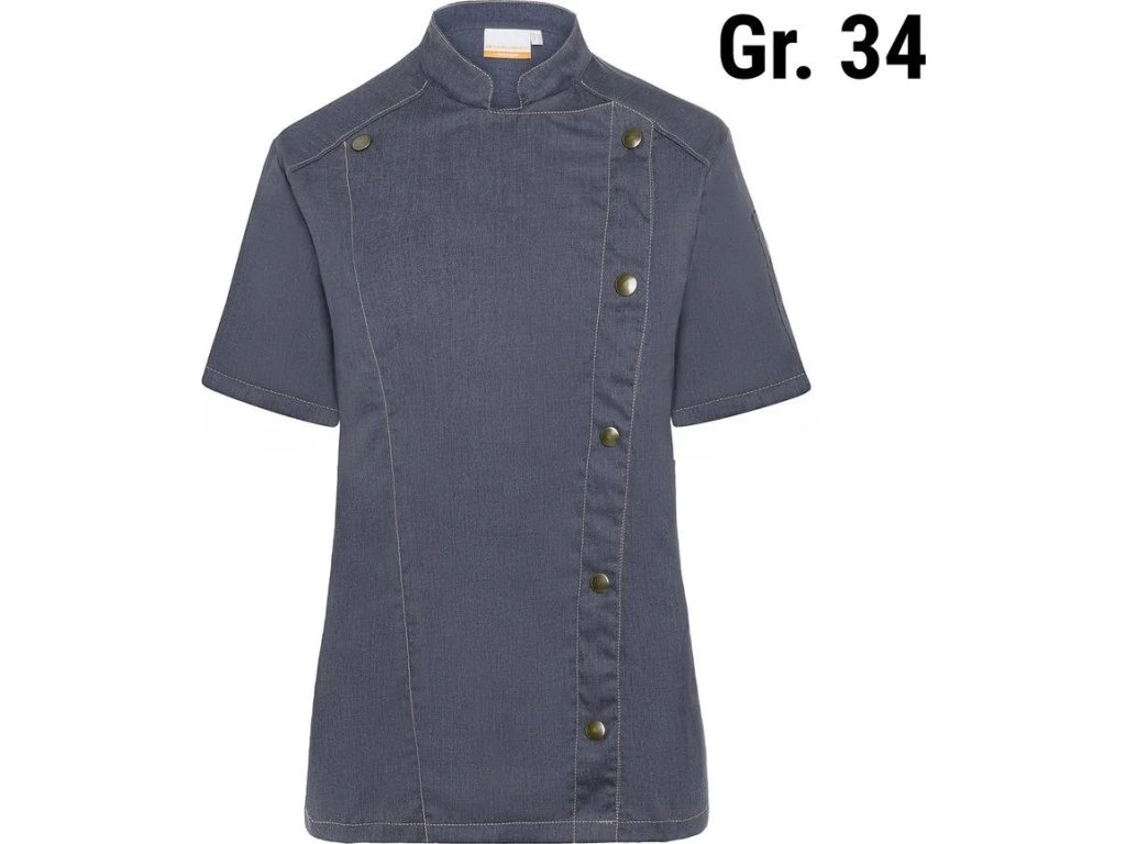 KARLOWSKY | Damska kurtka szefa kuchni z krótkim rękawem Styl dżinsowy - Czarny w stylu Vintage - Rozmiar: 34