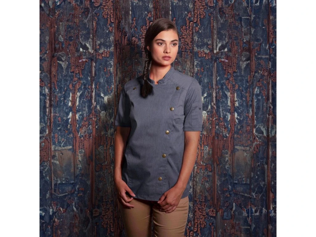 - Modna damska kurtka szefa kuchni w dżinsach o smukłej sylwetce