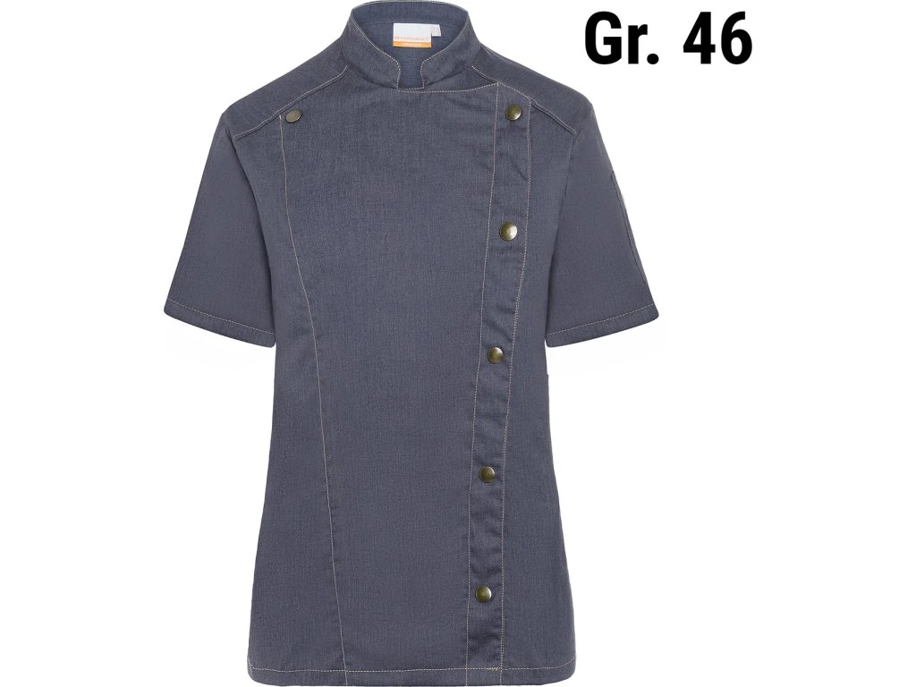 KARLOWSKY | Damska kurtka szefa kuchni z krótkim rękawem Styl dżinsowy - Czarny w stylu Vintage - Rozmiar: 46
