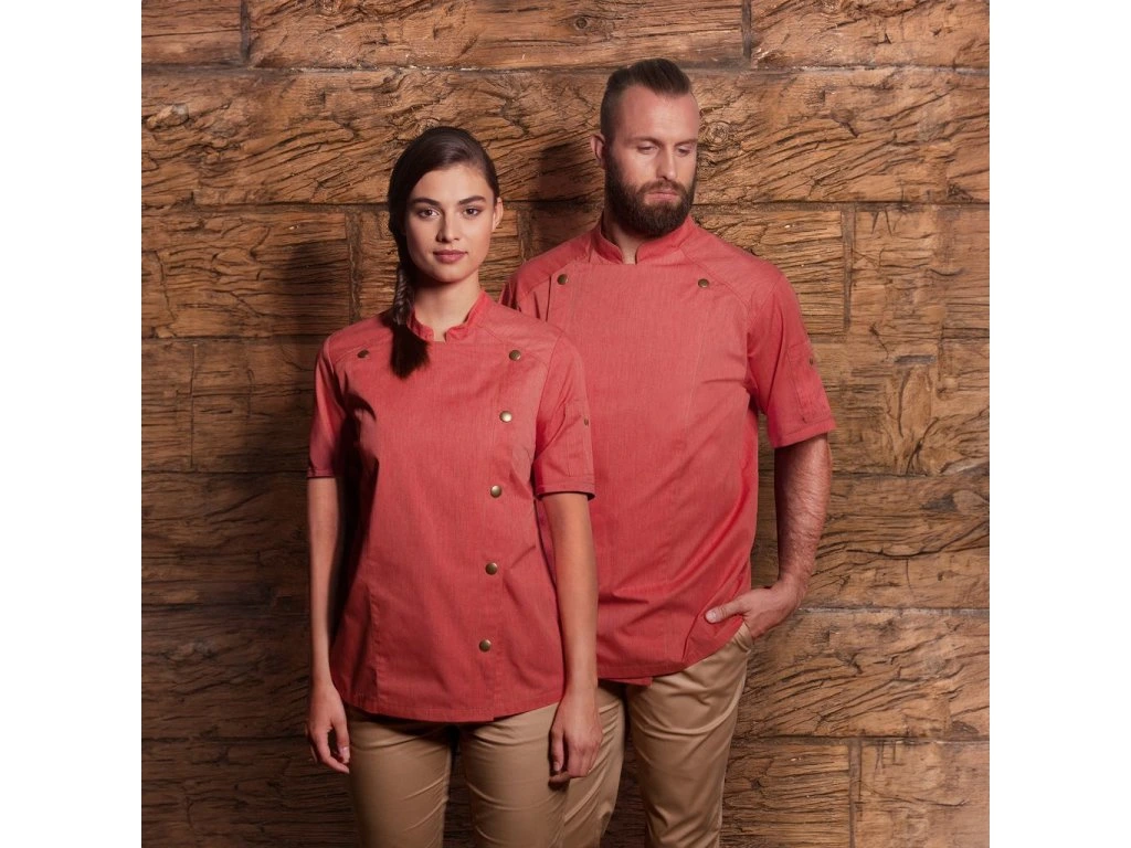 KARLOWSKY | Damska kurtka szefa kuchni z krótkim rękawem Styl dżinsowy - Czerwony w stylu Vintage - Rozmiar: 40