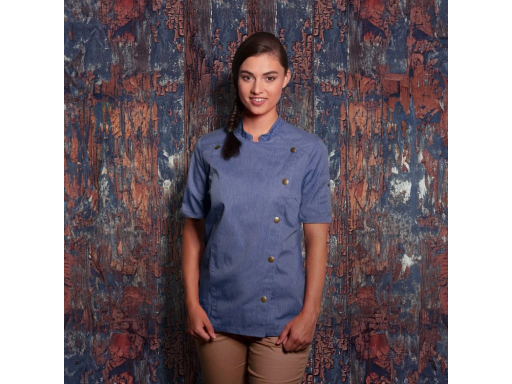KARLOWSKY | Damska kurtka szefa kuchni z krótkim rękawem Styl dżinsowy - Niebieski w stylu Vintage - Rozmiar: 38