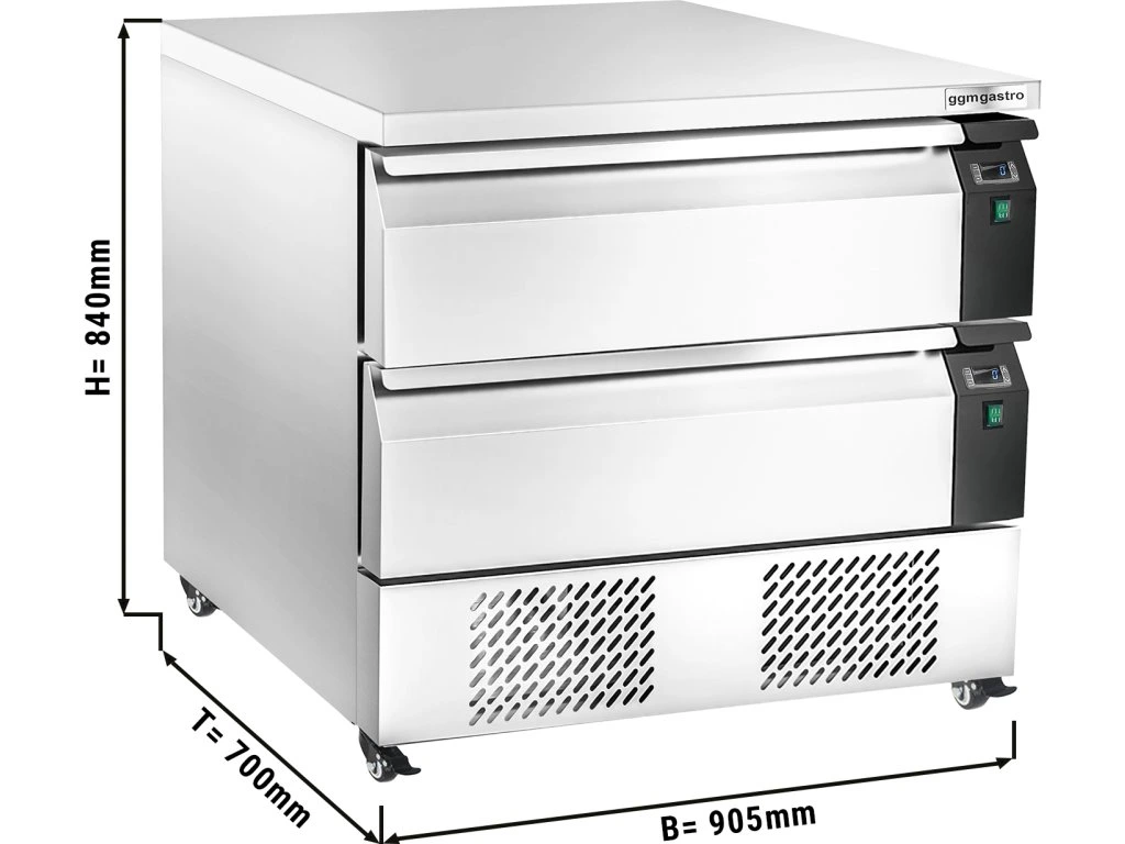 - Rozmiar przedziału: 2 Szuflady, każda 2x GN 1/1 - do 150 mm głębokości