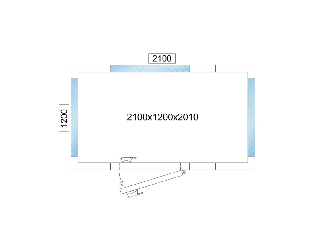 - Wymiary zewnętrzne szer. x gł. x wys: 2.100 mm x 1.200 mm x 2.010 mm