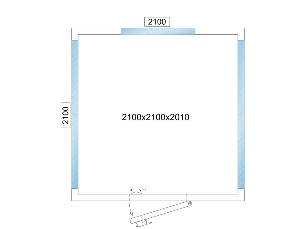 - Wymiary zewnętrzne szer. x gł. x wys: 2.100 mm x 2.100 mm x 2.010 mm