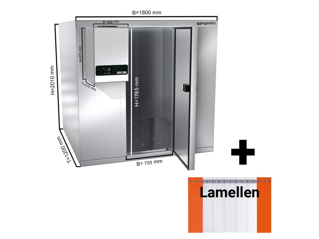Komora mroźnicza ze stali nierdzewnej - 1800x1200 mm - 2,65 m³ - włącznie z zamrażarką i listwami
