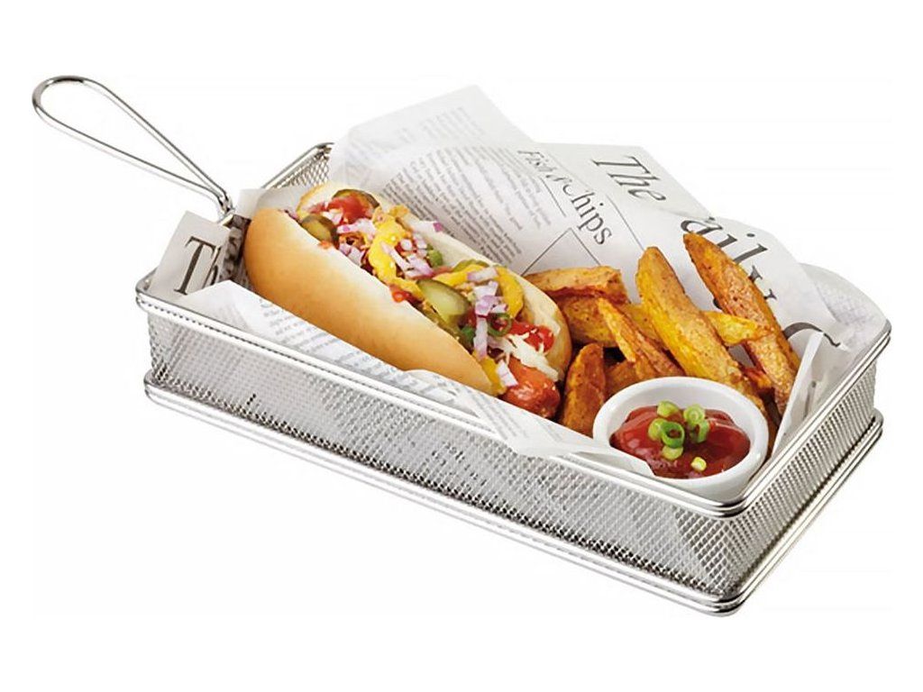 - Mini koszyki ze stali nierdzewnej nadają się do serwowania przystawek w porcjach