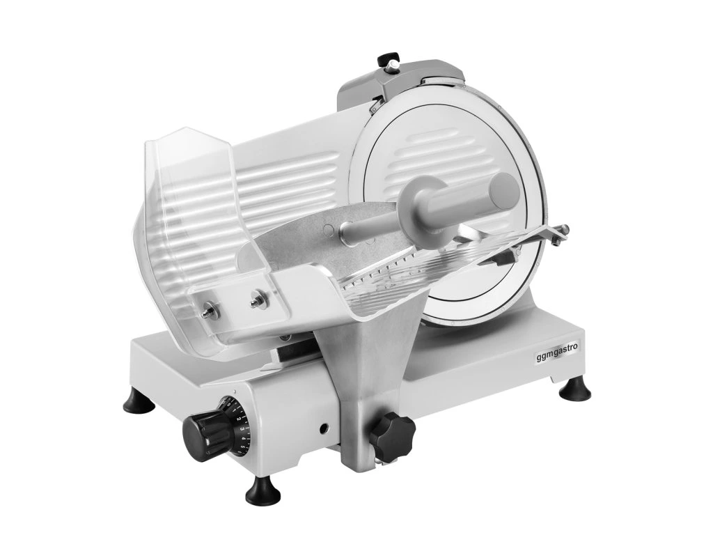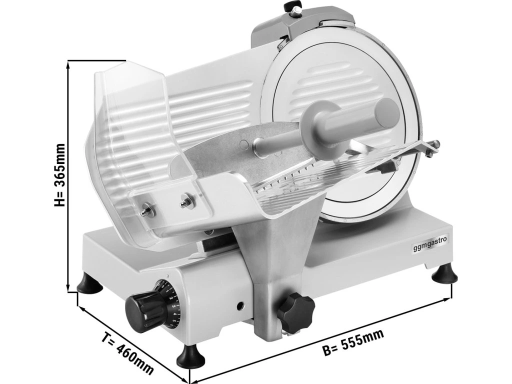 Elektryczna krajalnica do wędlin do celów komercyjnych - podawanie grawitacyjne, ostrze Ø 250 mm - 132 W - pochylenie ostrza 25°