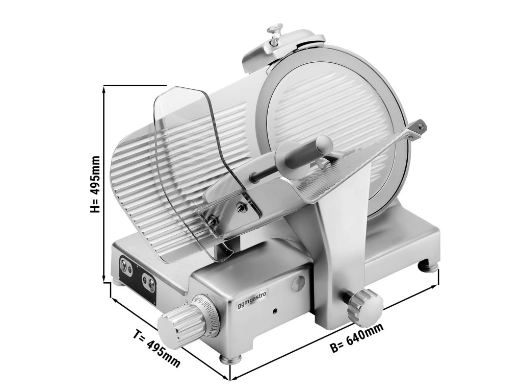 Elektryczna krajalnica do wędlin do celów komercyjnych - wózek grawitacyjny, ostrze Ø 300 mm - 210 W - pochylenie ostrza 38°