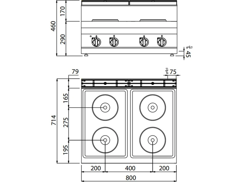 Kuchenka elektryczna - 10,4 kW - 4 płyty okrągłe