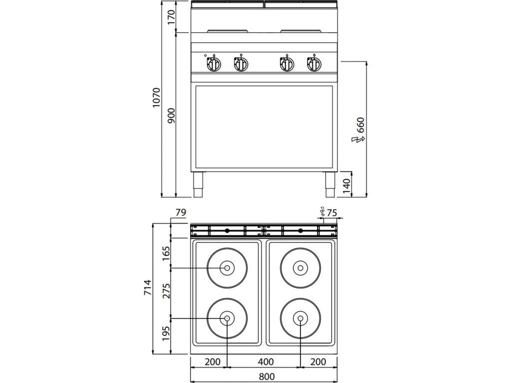 Kuchenka elektryczna - 10,4 kW - 4 płyty okrągłe