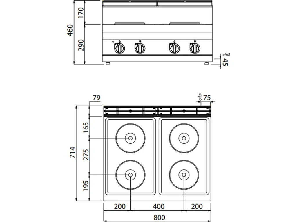 - 4 płyty grzewcze okrągłe