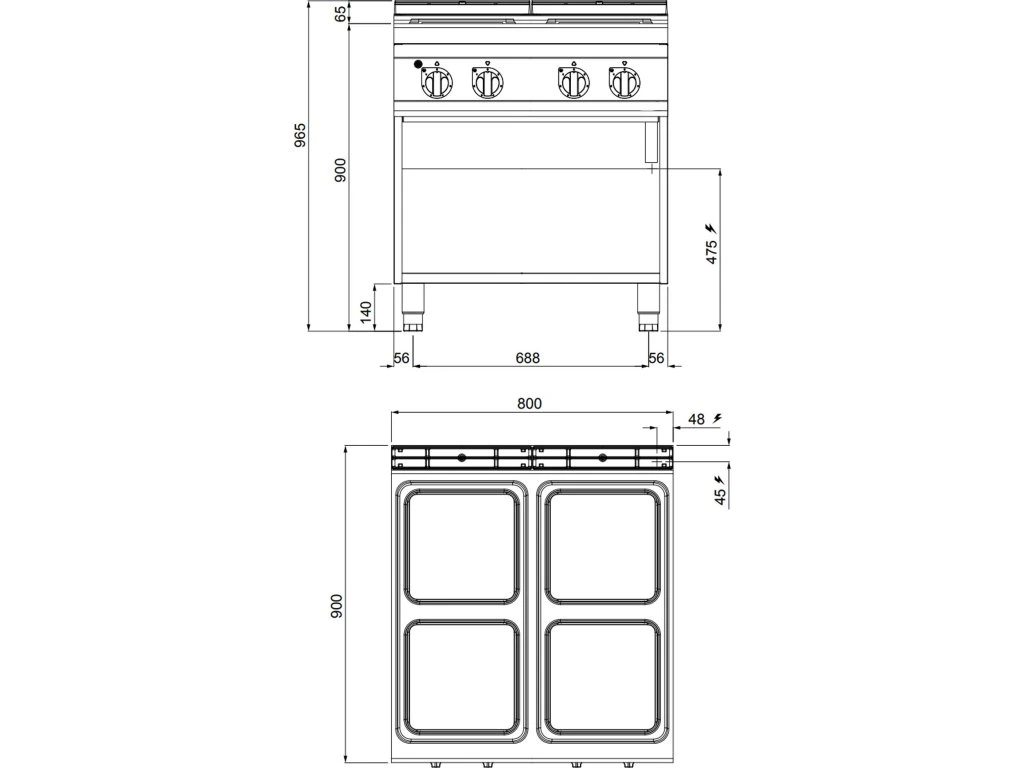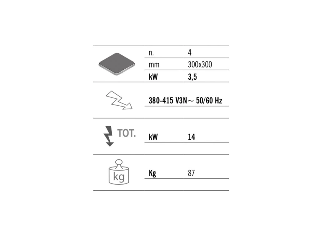 Kuchenka elektryczna - 14 kW - 4 płyty kwadratowe