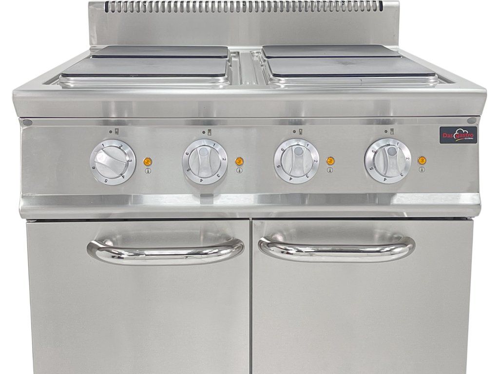 4 niezależne elektryczne płyty grzewcze (kwadratowe) – każda z własnym włącznikiem i regulacją mocy.
