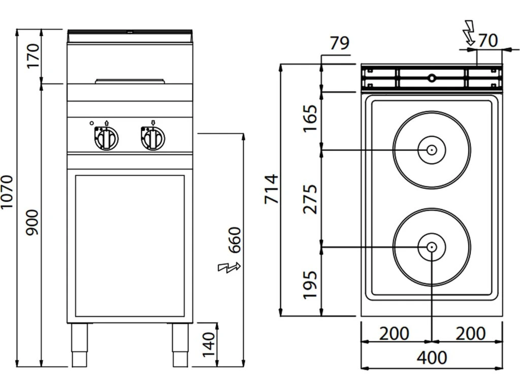 Kuchenka elektryczna - 5,2 kW - 2 okrągłe płyty