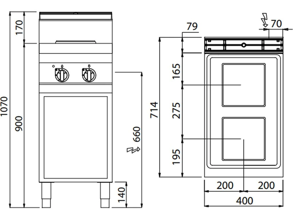 - 2 płyty grzewcze kwadratowe