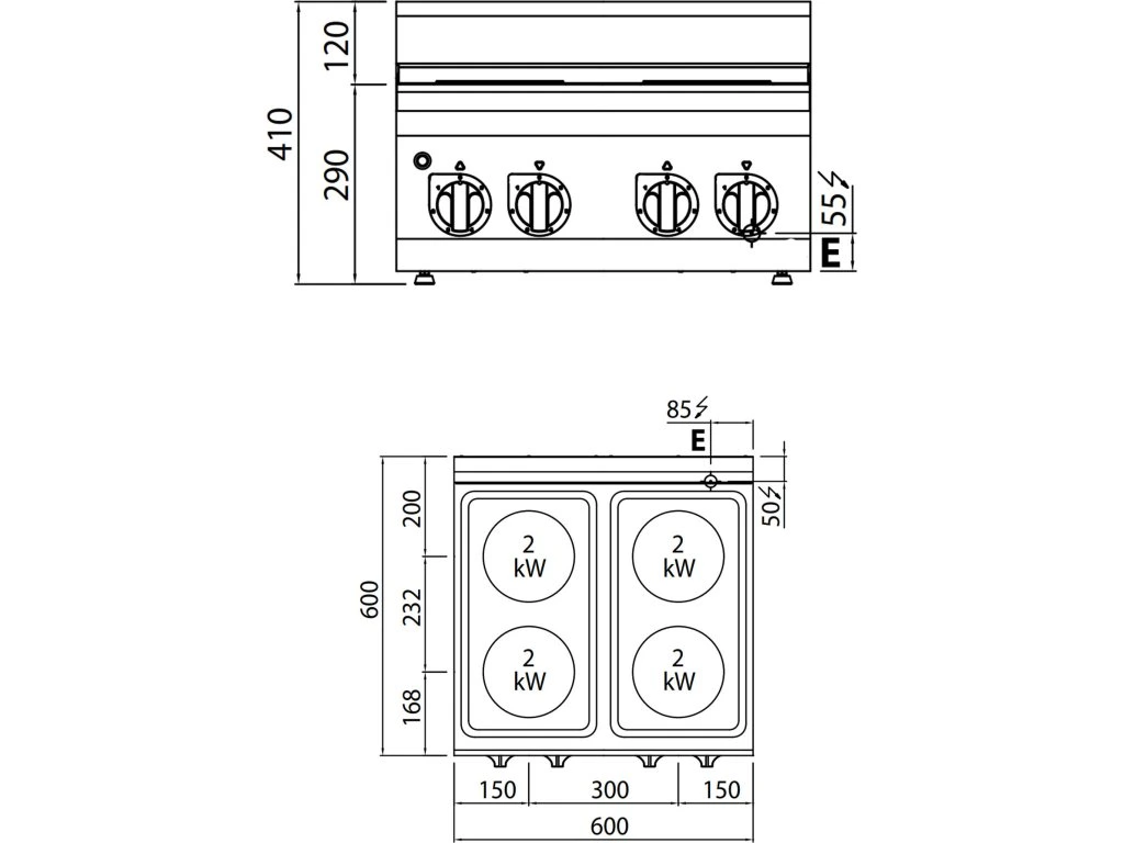 Kuchenka elektryczna - 8 kW - 4 płyty okrągłe