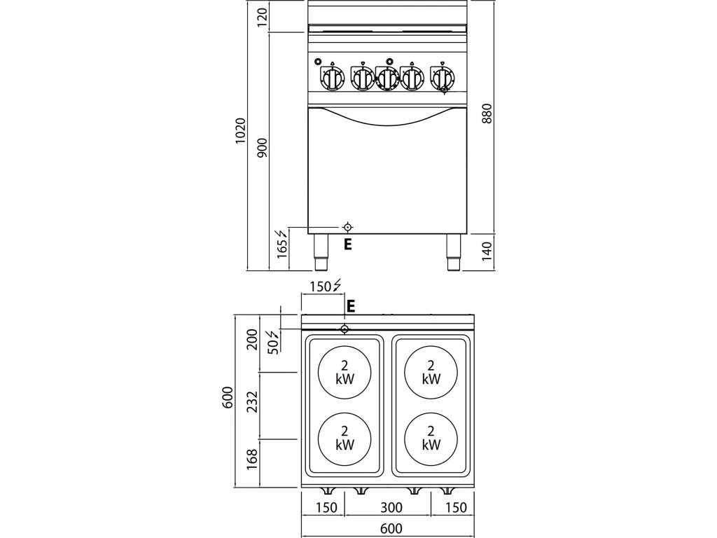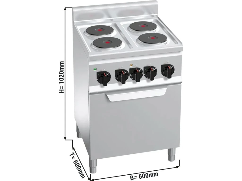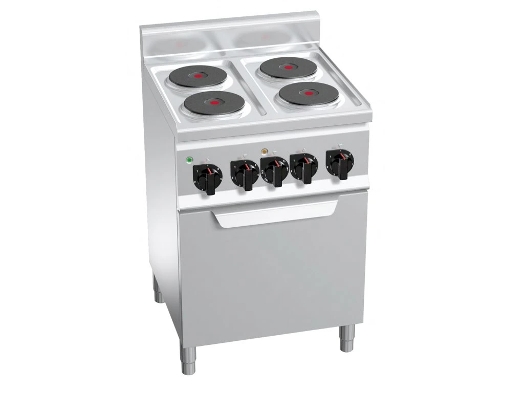Kuchenka elektryczna - 8 kW - 4 płyty okrągłe - włącznie z elektrycznym piekarnikiem konwekcyjnym - 3 kW