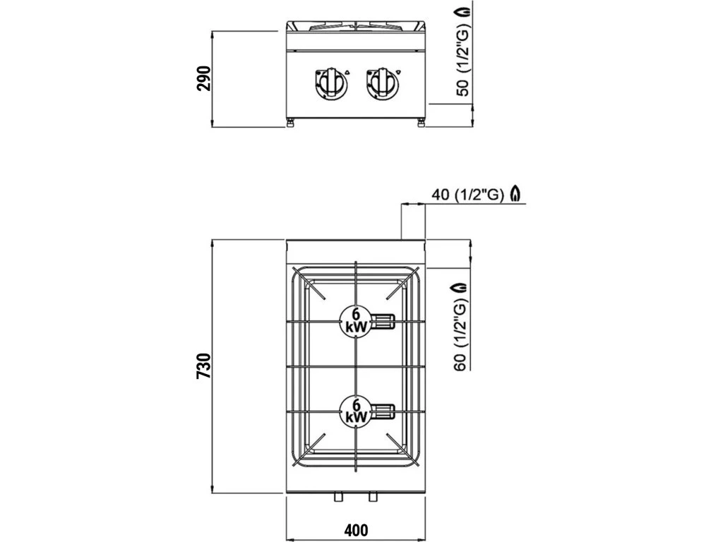 Kuchenka gazowa - 12 kW - 2 palniki