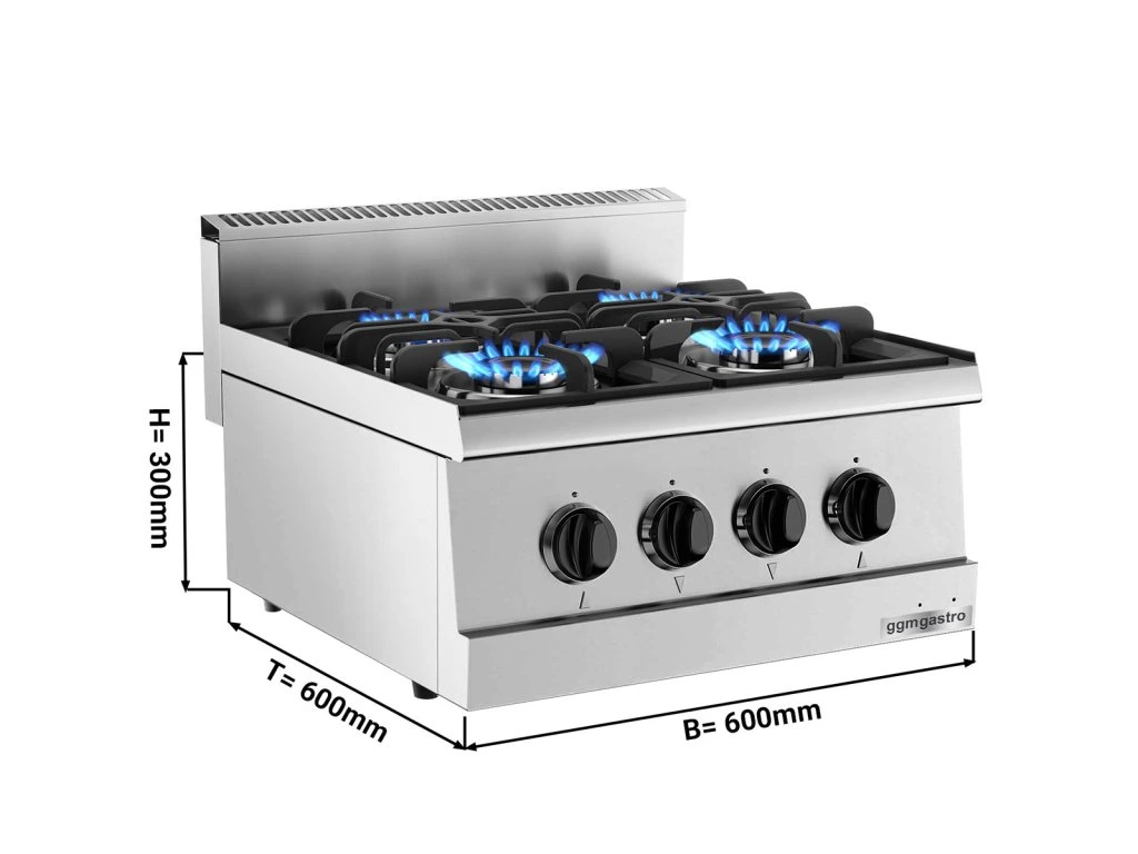 Profesjonalna płyta gazowa - 4 palniki - Podstawa w zestawie - Sterowanie indywidualne