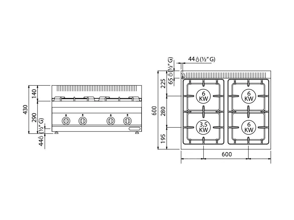 Kuchenka gazowa - 16 kW - 4 palniki