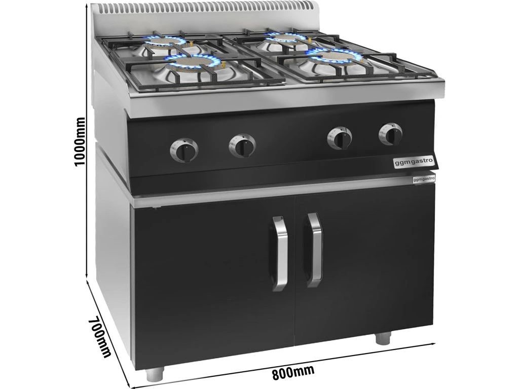 Kuchenka gazowa - 23 kW - 4 palniki - włącznie z podstawą z 2 drzwiczkami