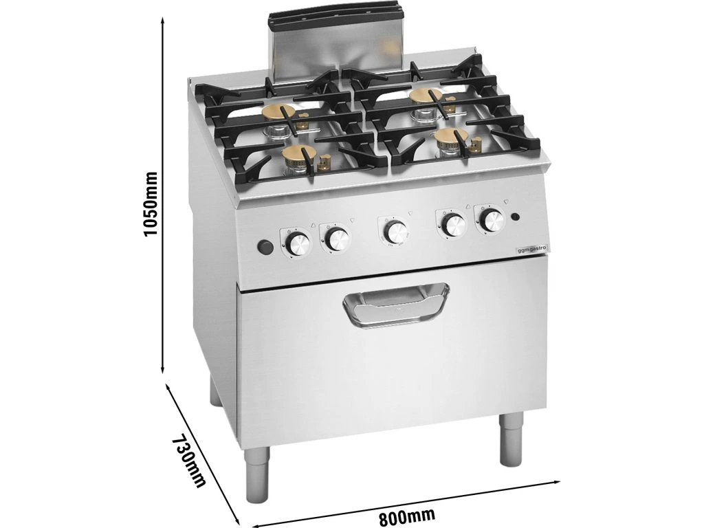 Płyta gazowa - 31,8 kW - 4 palniki - włącznie z piekarnikiem gazowym - 7,8 kW