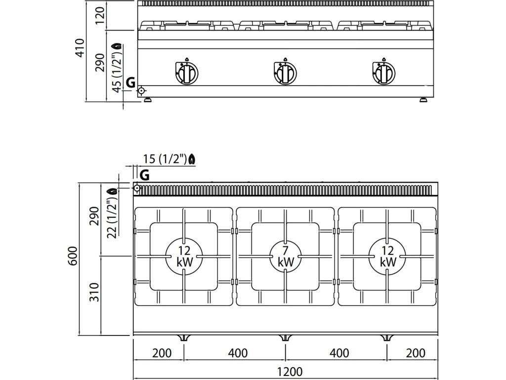 Kuchenka gazowa - 31 kW - 3 palniki