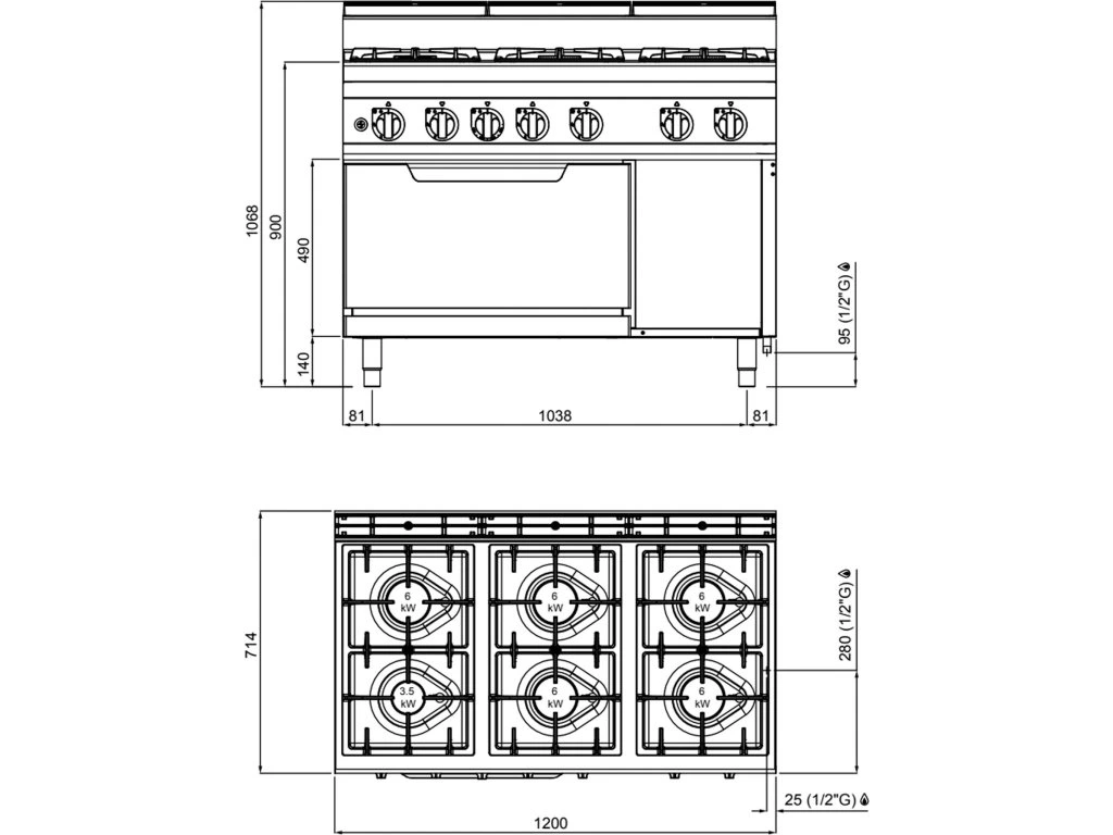 Gazowa Kuchenka - 33,5 kW - 6 Palników - włącznie z piekarnikiem gazowym - 7,8 kW