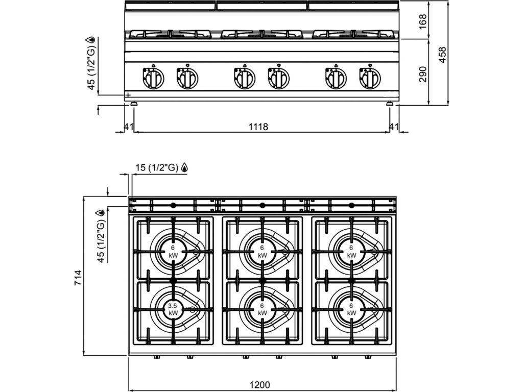 Kuchenka gazowa - 33,5 kW - 6 palników