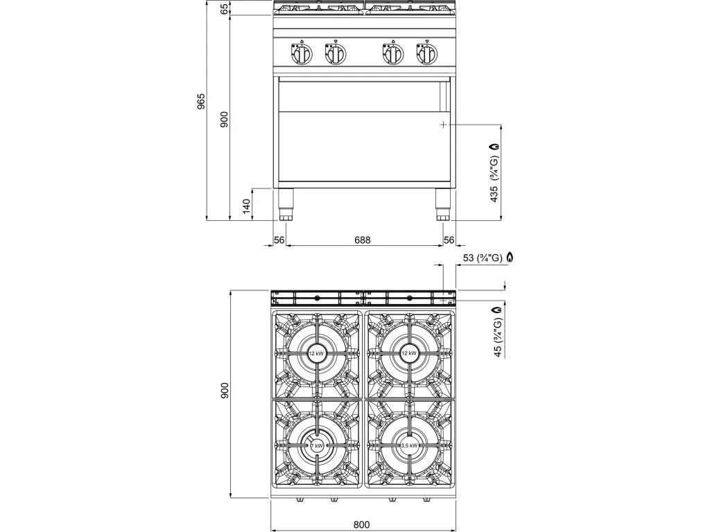 Kuchenka gazowa - 34,5 kW - 4 palniki