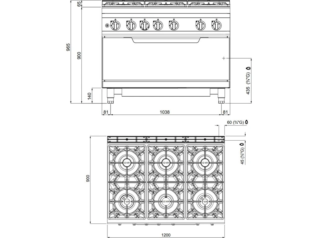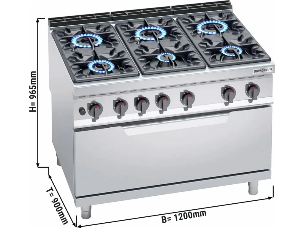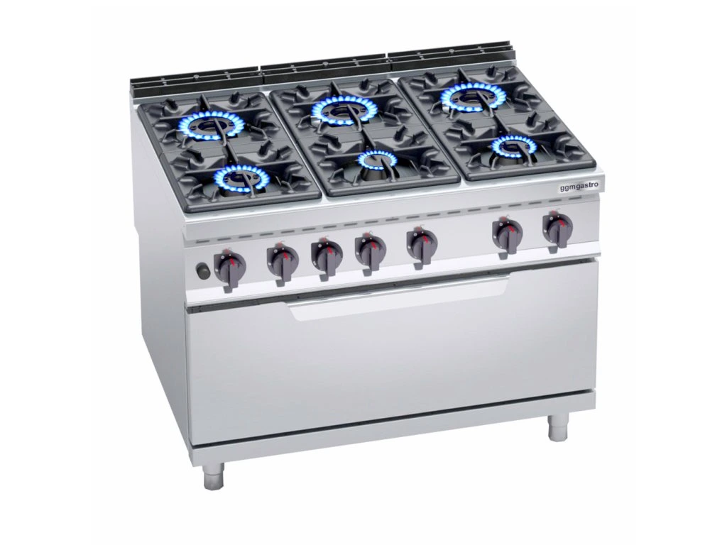 Kuchenka gazowa - 53,5 kW - 6 palników - włącznie z piekarnikiem gazowym - 12 kW