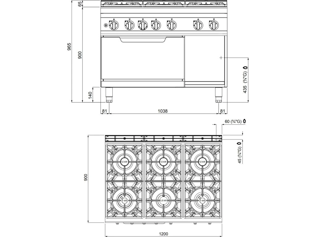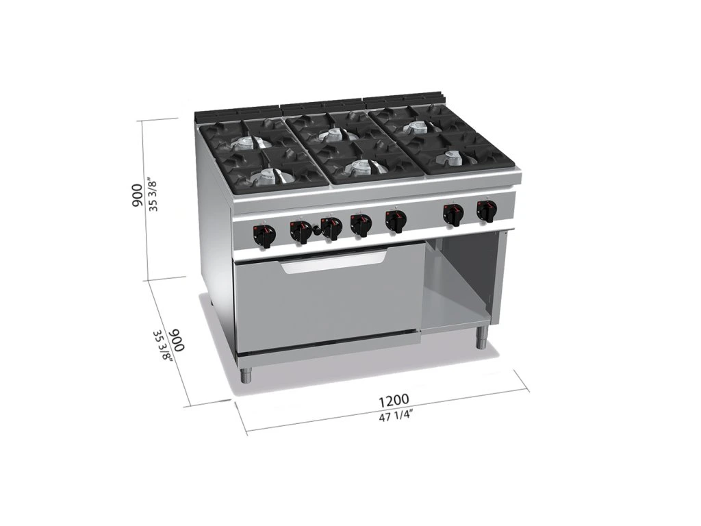 Kuchenka gazowa - 53,5 kW - 6 palników - włącznie z piekarnikiem gazowym - 7,8 kW