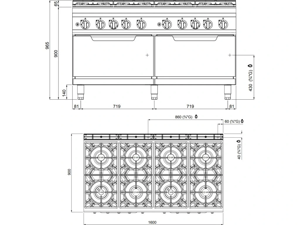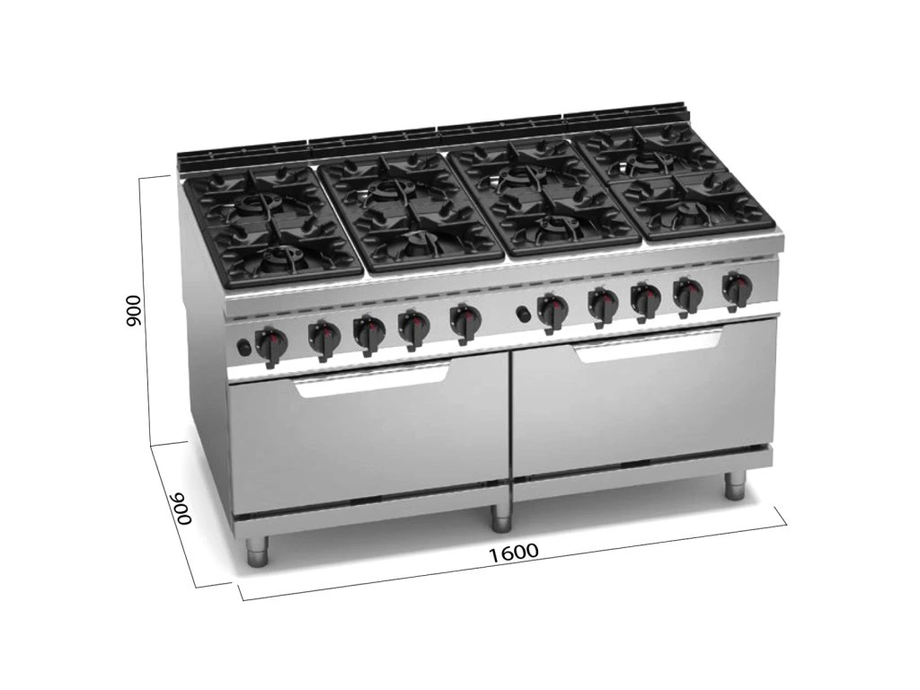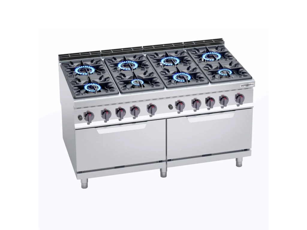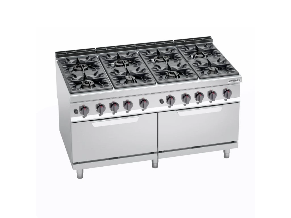 Kuchenka gazowa - 69 kW - 8 palników - włącznie z 2 piekarnikami gazowymi - 2x 7,6 kW