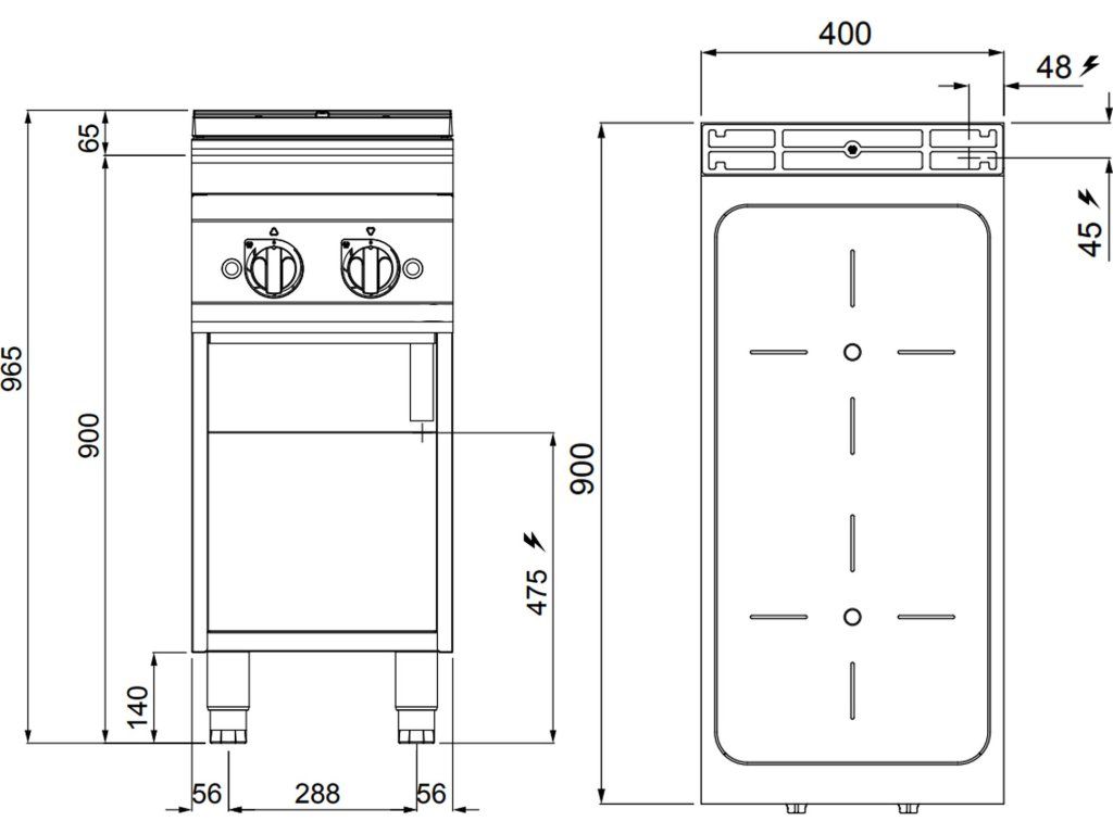 - Wymiary zewnętrzne szer. x gł. x wys: 400 mm x 900 mm x 965 mm