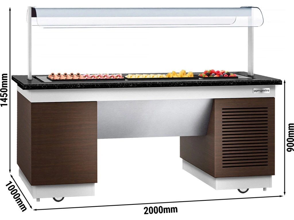 Lada bufetowa chłodnicza DUBLIN - 2000 mm - z płytą chłodzącą & kółkami