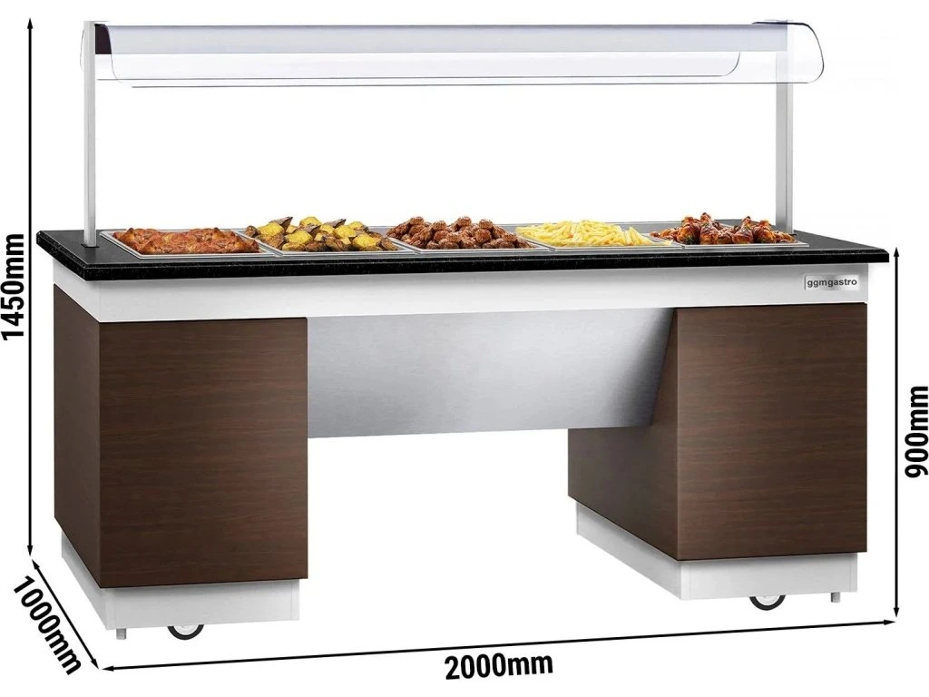 Lada bufetowa DUBLIN - 2000 mm - z bemarem i kółkami - dla 5x GN 1/2