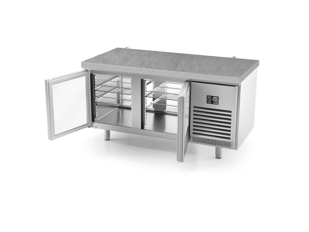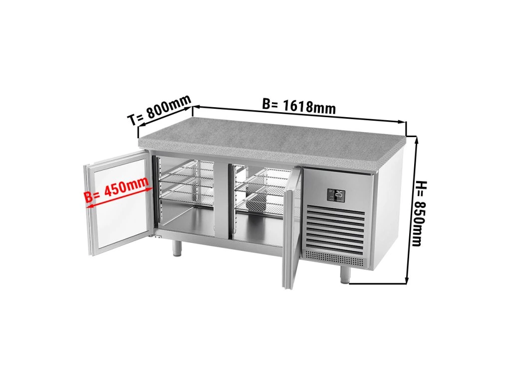 Stół chłodniczy piekarniczy Premium PLUS - 1618x800 mm - z drzwiami po obu stronach i granitowym blatem roboczym