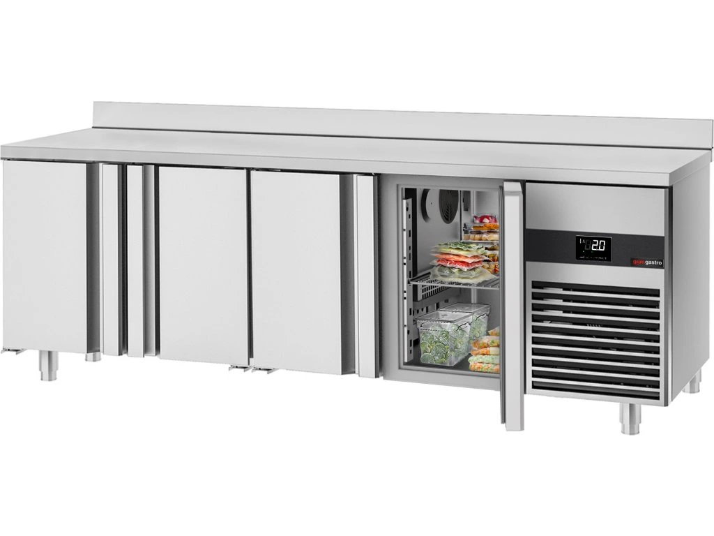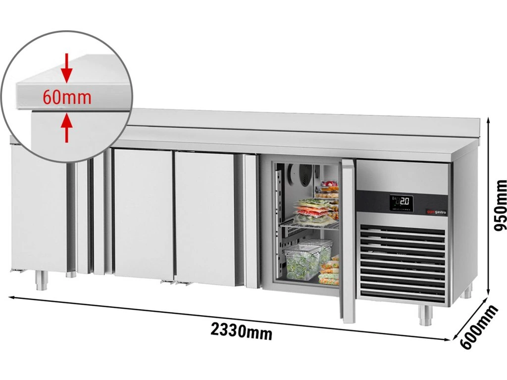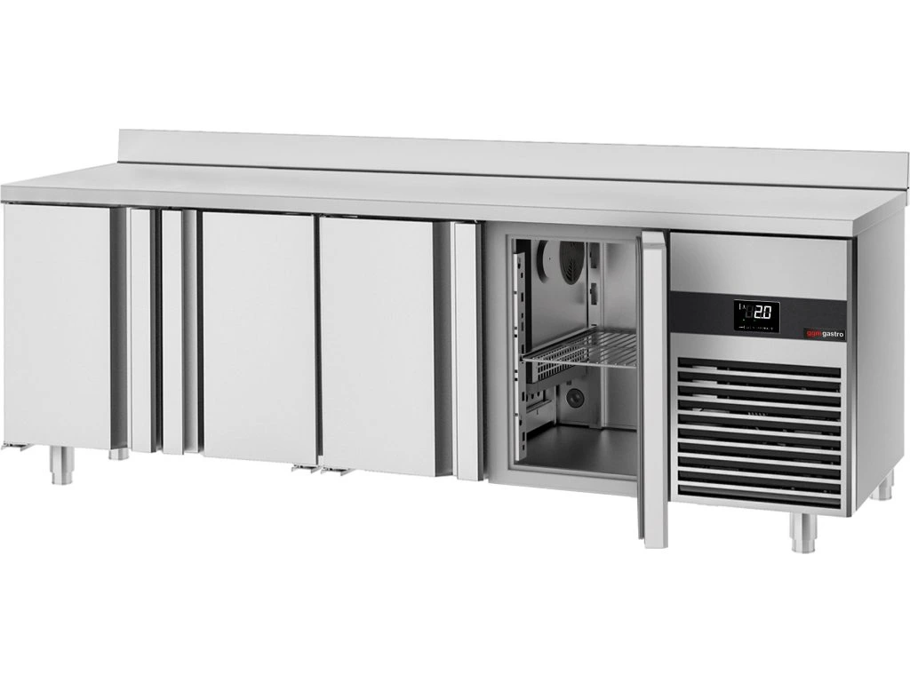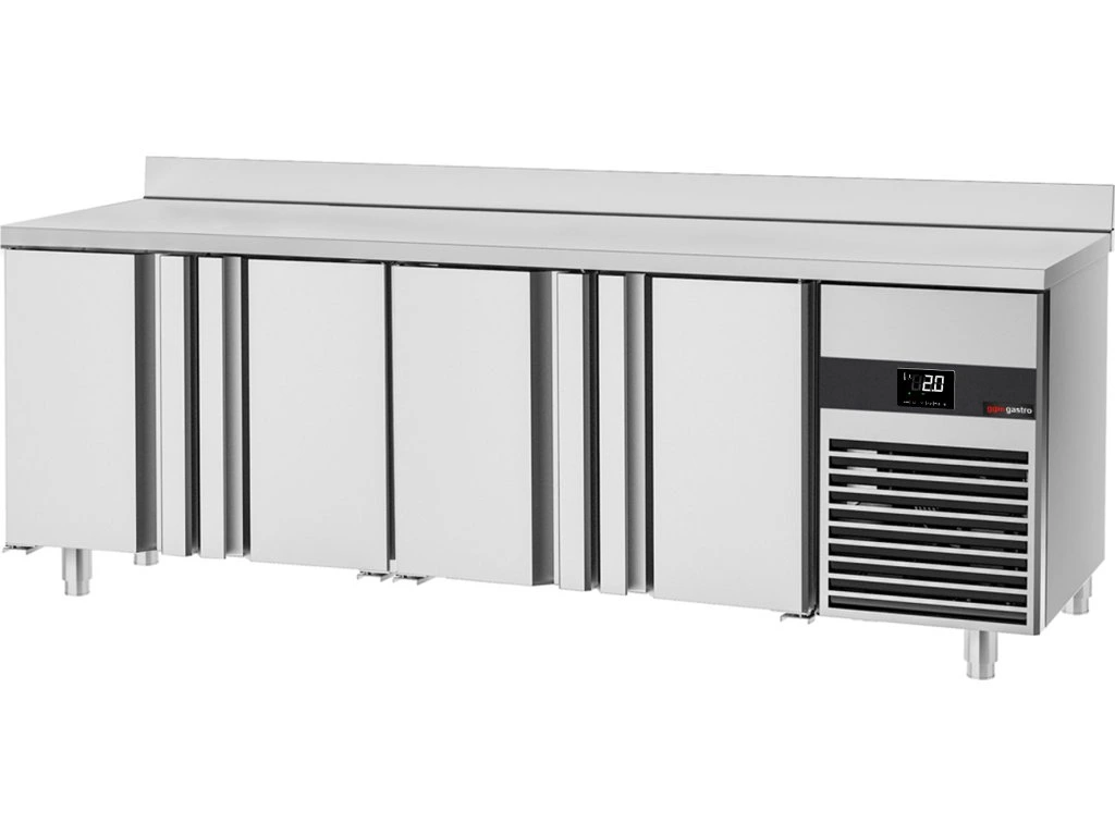 Stół chłodniczy PREMIUM - 2330x600 mm - z 4 drzwiami i panelem tylnym