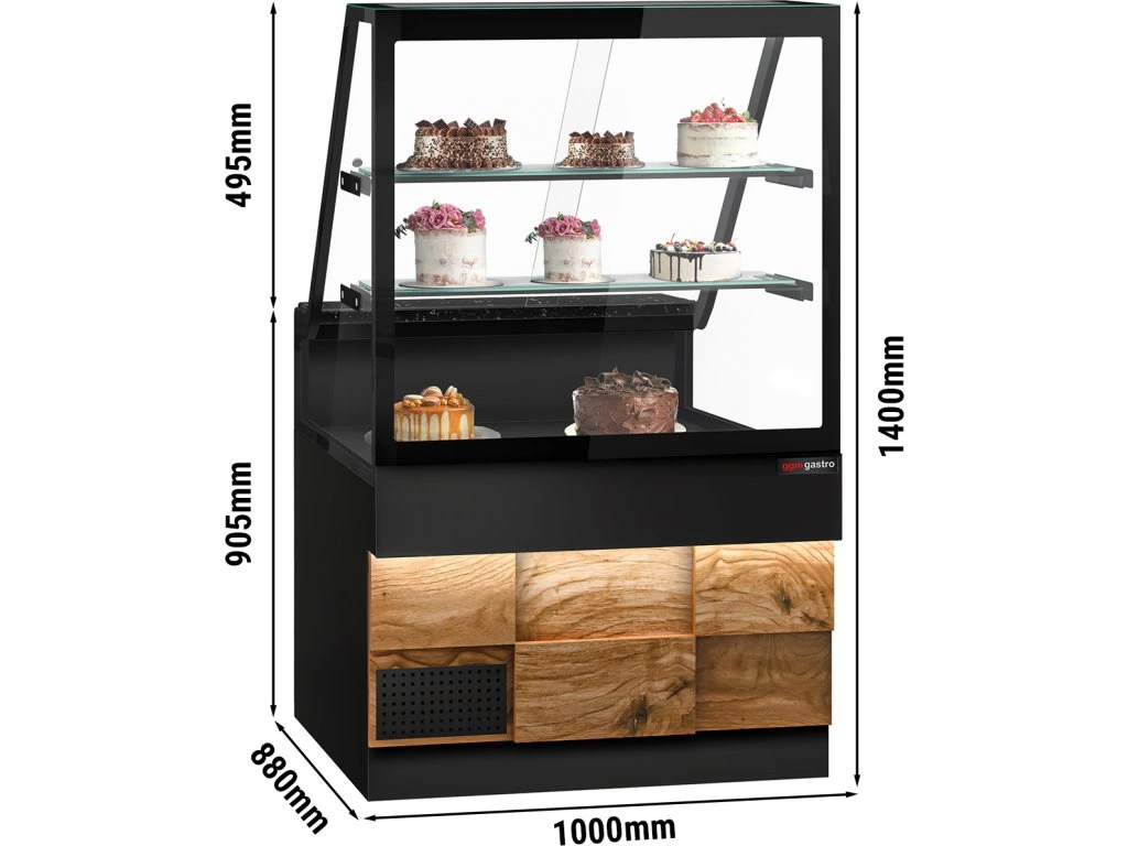 Lada chłodnicza TORONTO - 1000 mm - drewniany panel przedni - 2 półki - blat z czarnego granitu