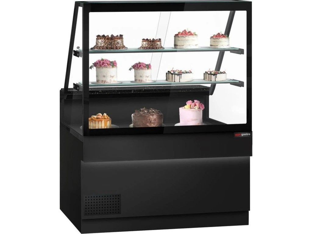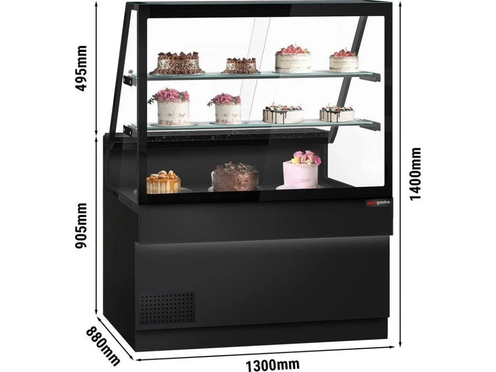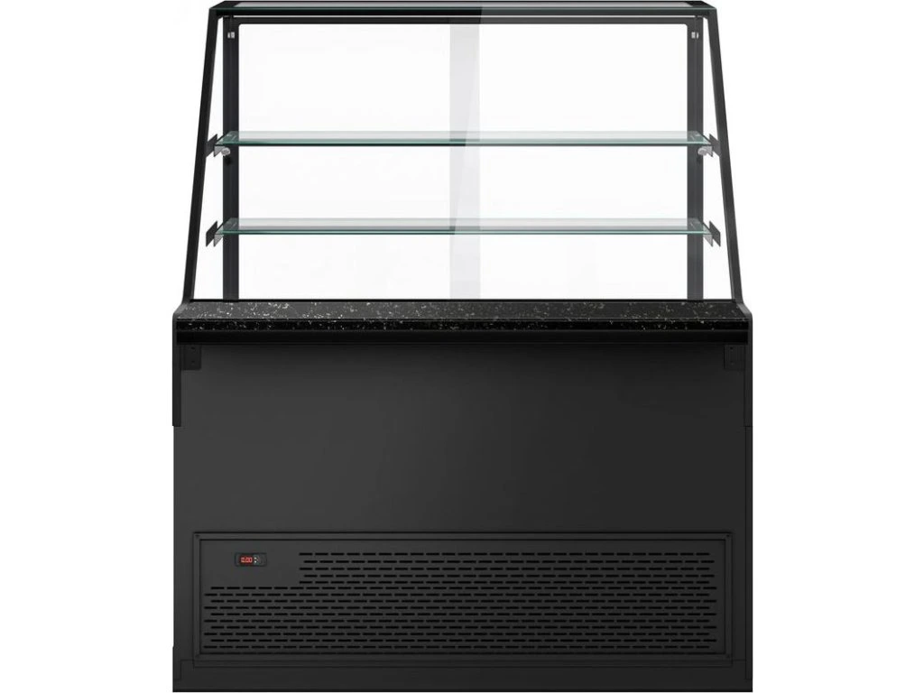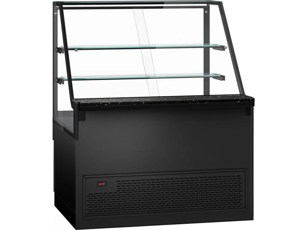 Lada chłodnicza TORONTO - 1300 mm - 2 półki - czarny panel przedni - blat z czarnego granitu