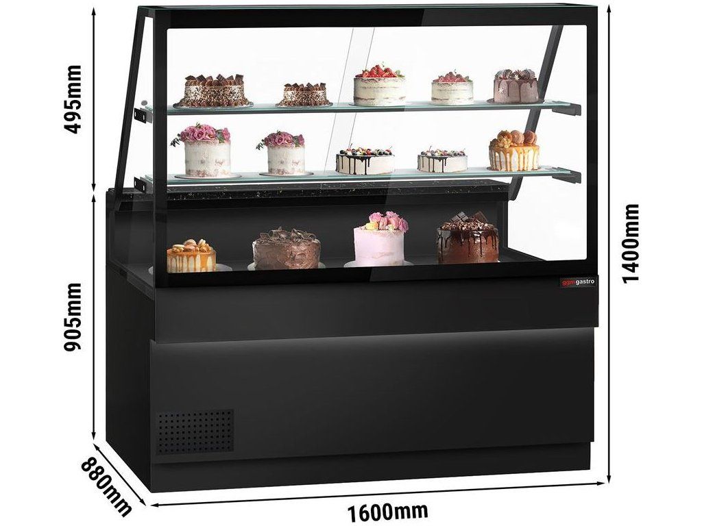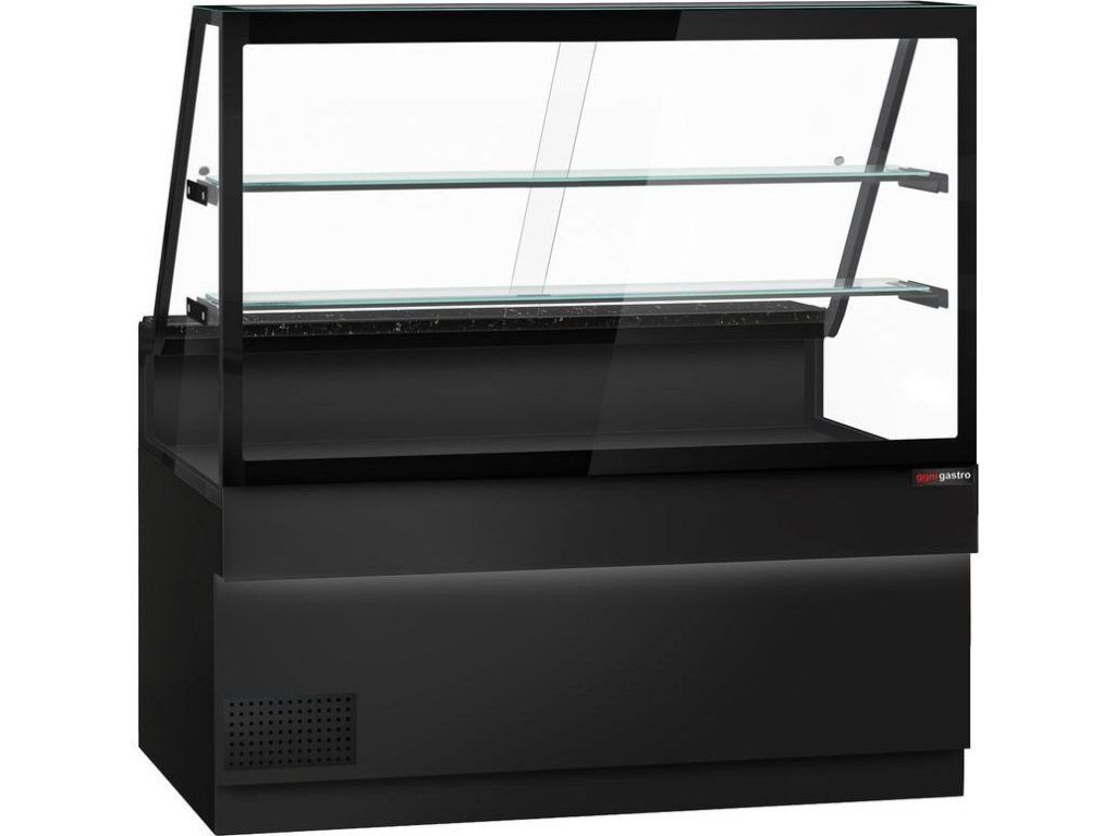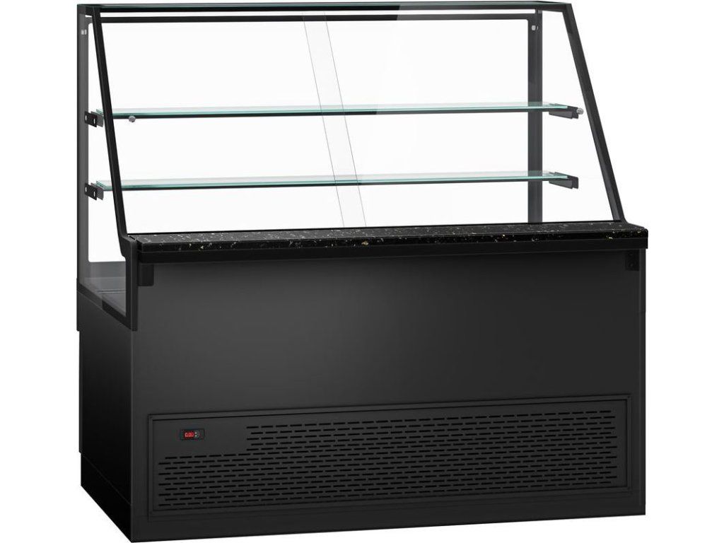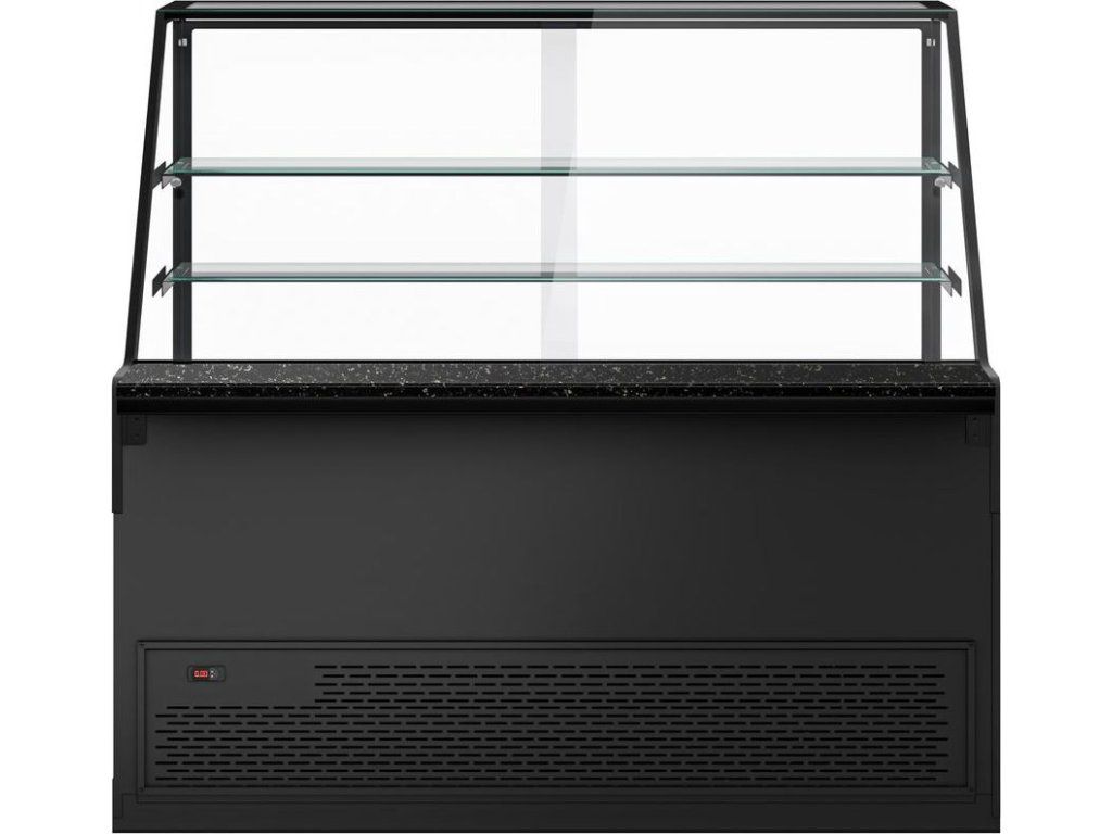 Lada chłodnicza TORONTO - 1600 mm - 2 półki - czarny panel przedni - blat z czarnego granitu