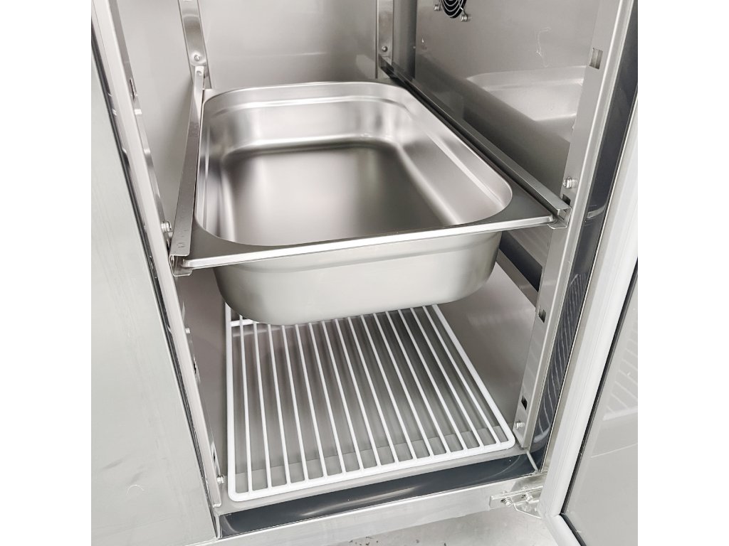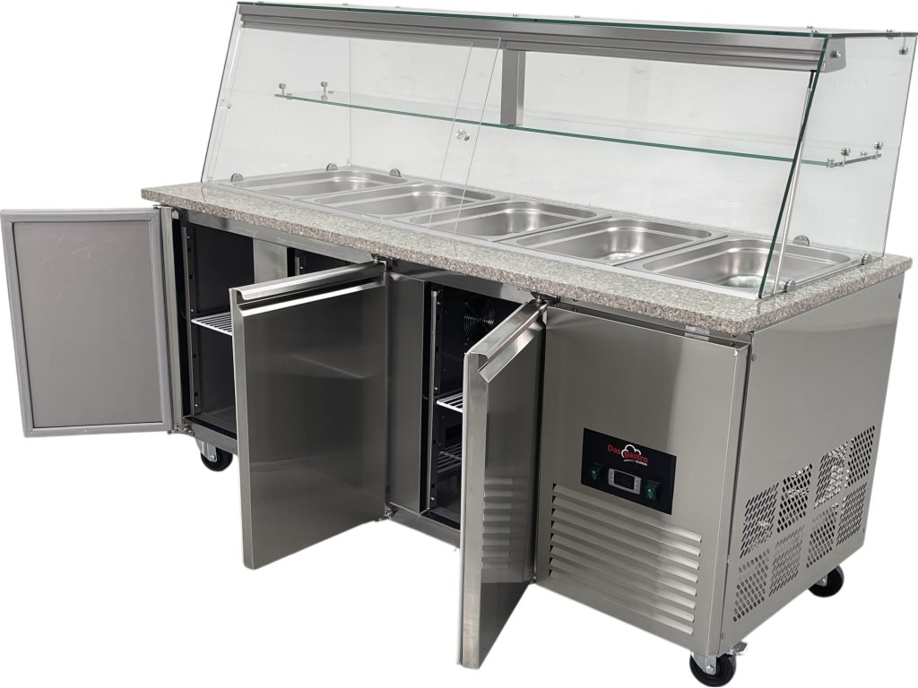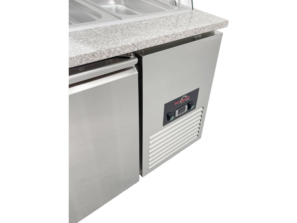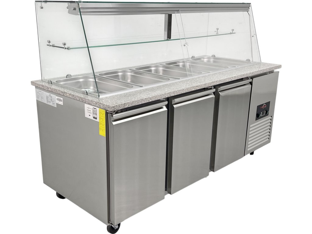 Stół chłodniczy przeznaczony dla punktów gastronomicznych i innych lokali gastronomicznych. Górna część jest przystosowana do ustawienia 5 pojemników GN 1/1 , gdzie potrawy są wyraźnie eksponowane pod szklanym blatem z wbudowanym oświetleniem. Dolna część oferuje chłodniczą przestrzeń magazynową z możliwością bezpośredniego wstawiania pojemników GN.
