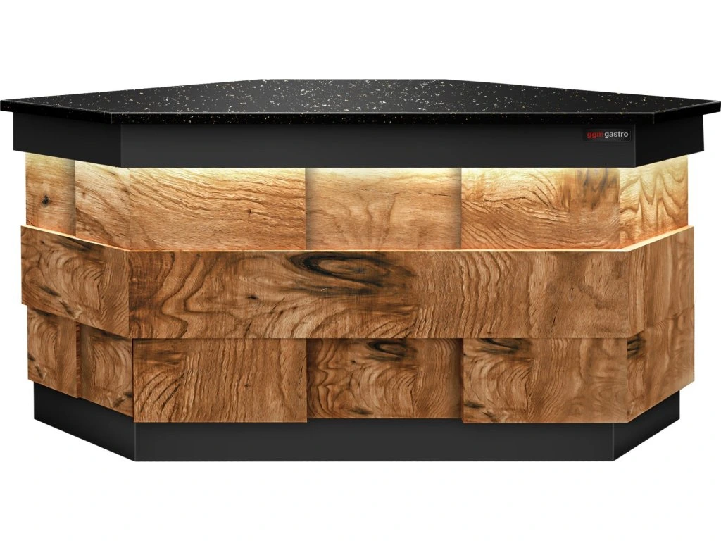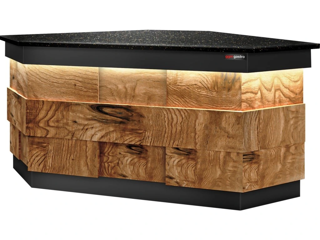 Lada kasowa narożna TORONTO - 1570 mm - drewniany panel przedni - blat z czarnego granitu