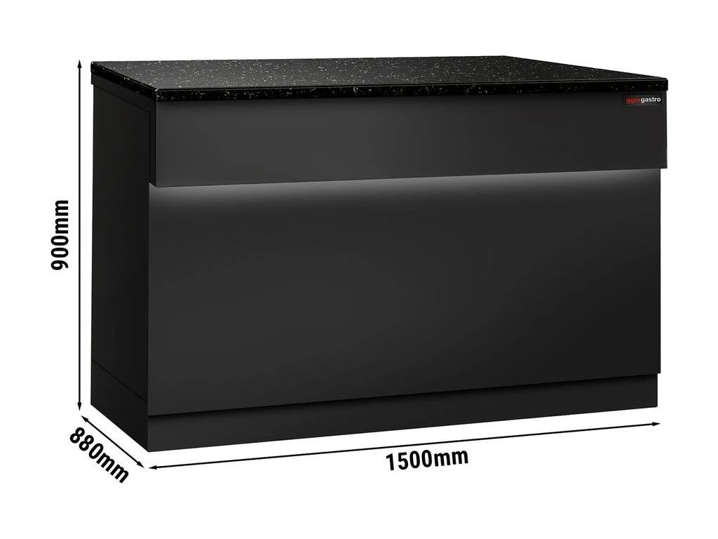 Lada kasowa TORONTO - 1500 mm - czarny panel przedni - blat z czarnego granitu