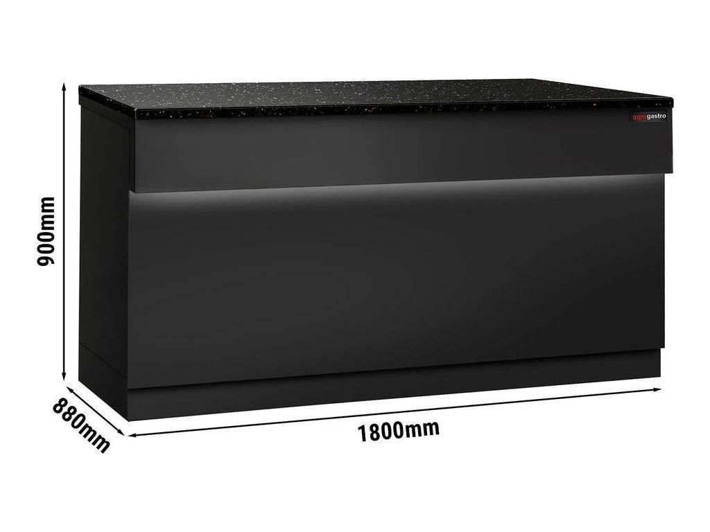 Lada kasowa TORONTO - 1800 mm - czarny panel przedni - czarny granitowy blat roboczy