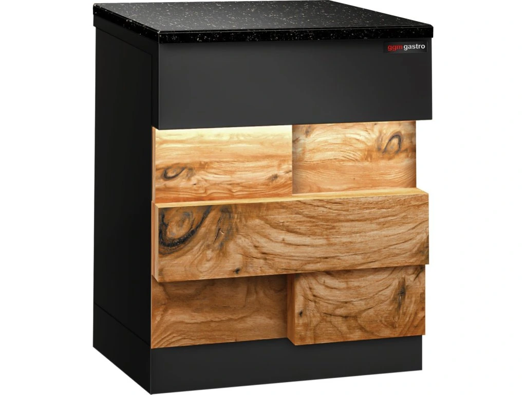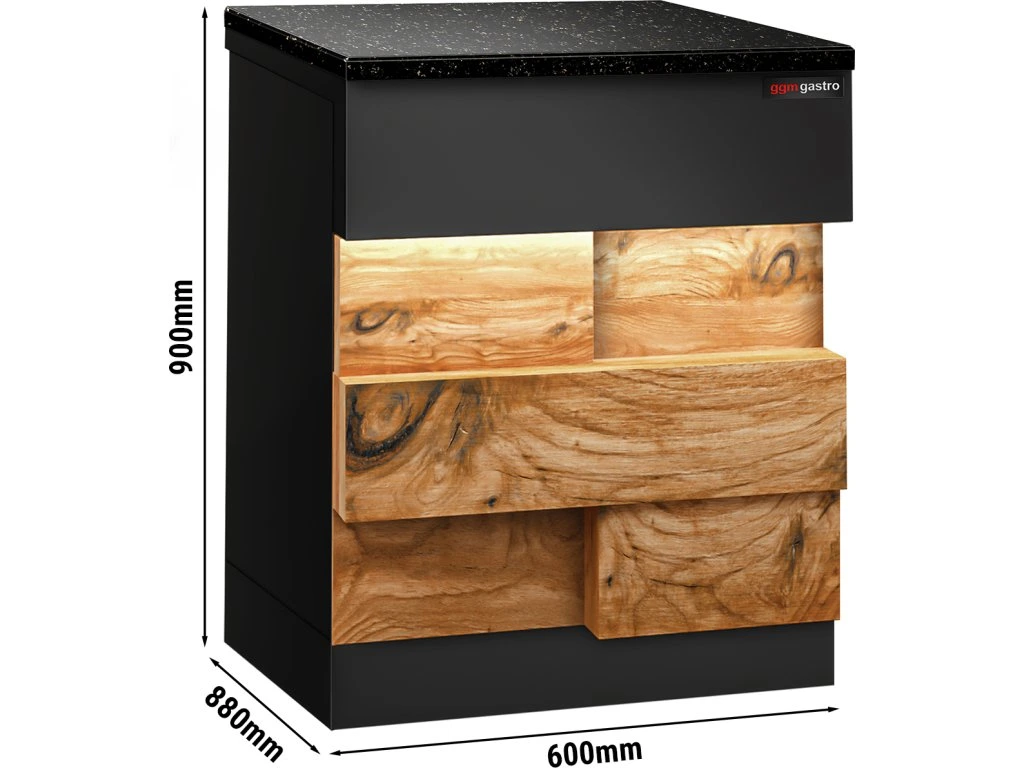 Lada kasowa TORONTO - 600 mm - drewniany panel przedni - blat z czarnego granitu
