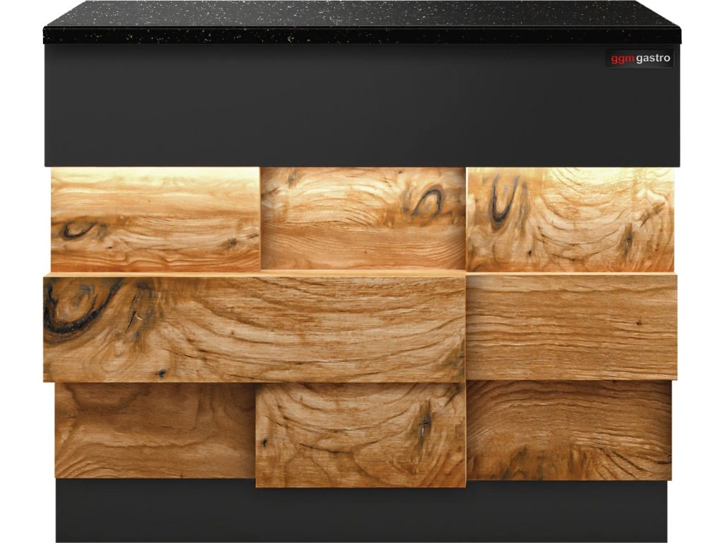Lada kasowa TORONTO - 900 mm - drewniany panel przedni - blat z czarnego granitu