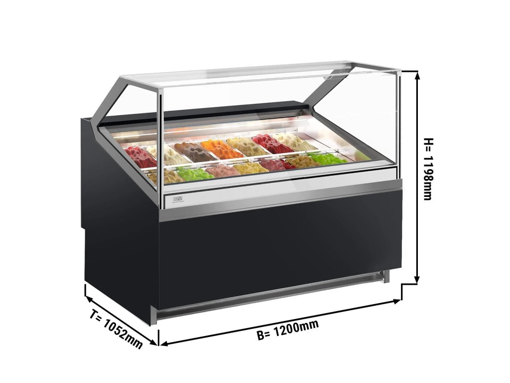 Lada na lody IVY - 1200 mm - konwekcyjna - na 14 pojemników o pojemności 5 litrów - Czarna