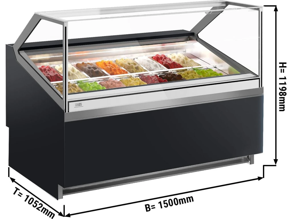 Lada na lody IVY - 1560 mm - konwekcyjna - na 16 pojemników 5 L - Czarna