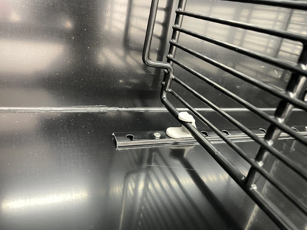 - Praktyczne drzwi przesuwne – płynny ruch na kółkach, automatyczne zamykanie grawitacyjne i możliwość zablokowania w pozycji otwartej